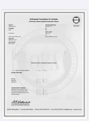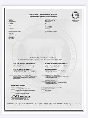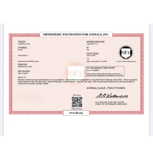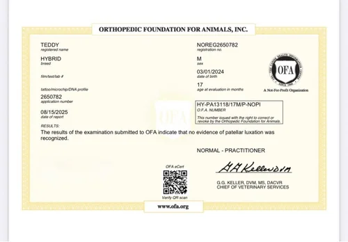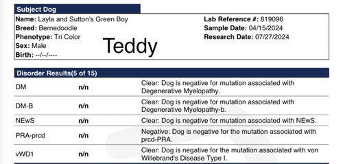 Ja, Teddy is uitgebreid genetisch en orthopedisch getest met meerdere “clear” resultaten.