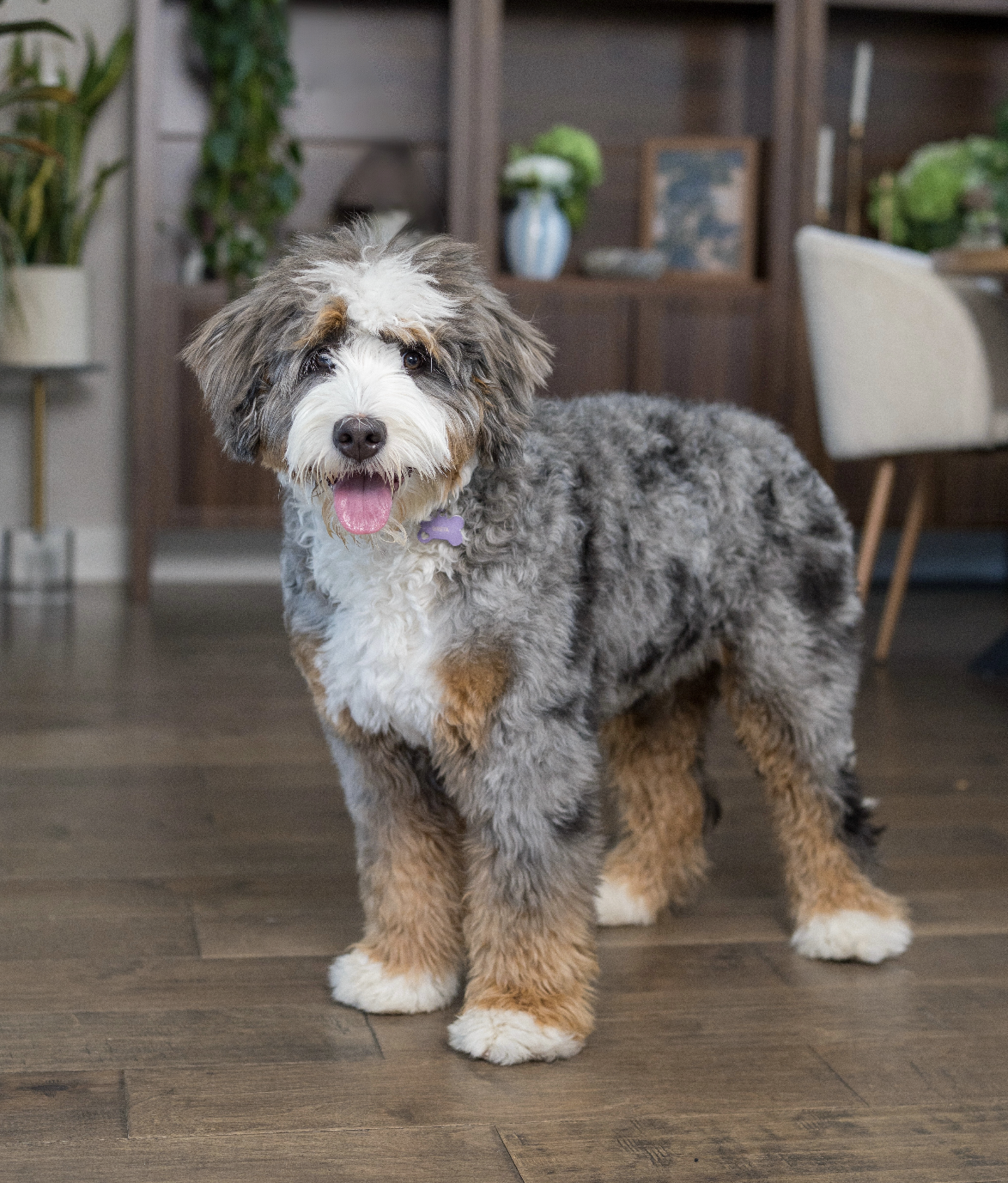 Greta Bella Bean is een beschikbare Ultra Bernedoodle teef in Nederland uit een verantwoord en welzijnsgericht fokprogramma. Voor gezinnen die op zoek zijn naar een stabiele, genetisch geteste Bernedoodle met een sterke Bernese Mountain Dog achtergrond, vertegenwoordigt Greta een zorgvuldig geselecteerde combinatie van karakter, gezondheid en structuur.